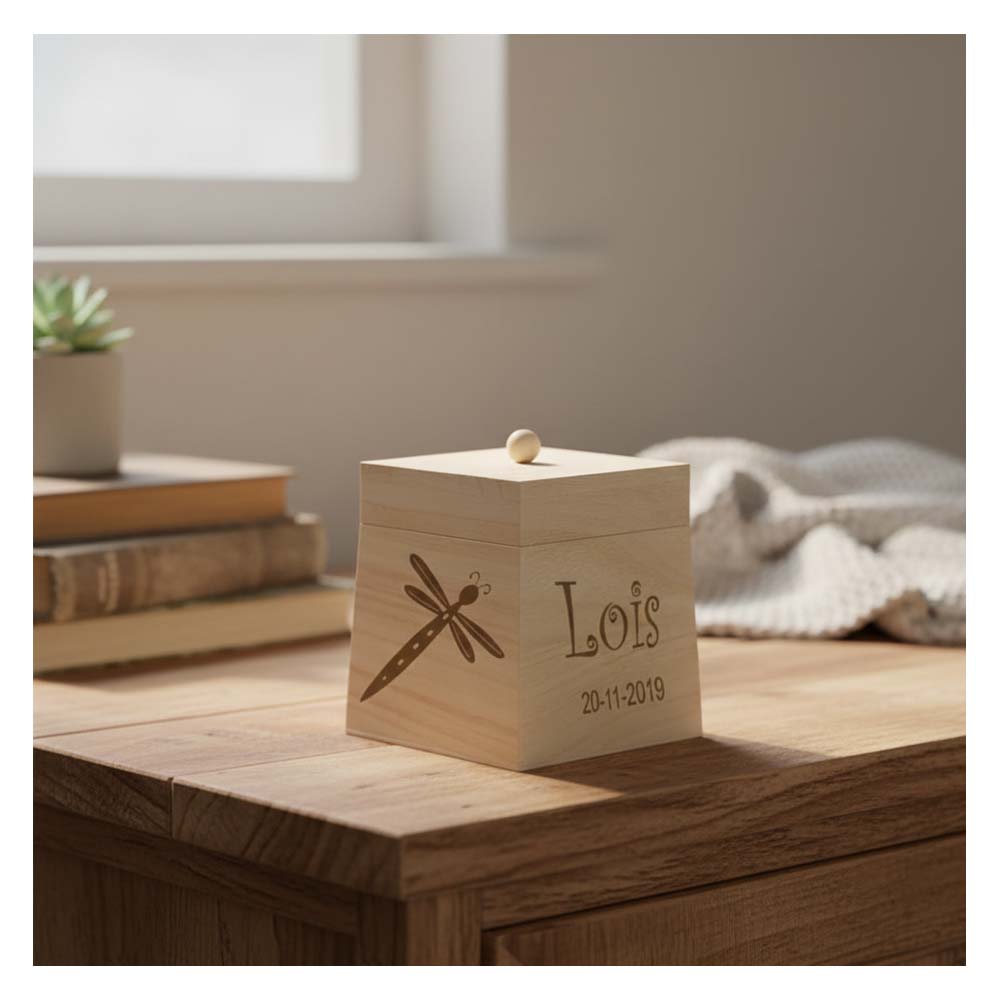 Wat dit bewaarkistje echt bijzonder maakt, is de mogelijkheid tot volledige personalisatie. Bij ons geen standaardontwerpen, maar écht vakwerk op maat. Je bepaalt zelf hoeveel zijdes we graveren: kies voor alleen de bovenkant, of laat twee, drie of zelfs alle zijkanten voorzien van een uniek ontwerp. Met onze geavanceerde lasertechniek brengen we teksten, gedetailleerde afbeeldingen of zelfs een persoonlijke foto haarscherp aan in het hout.