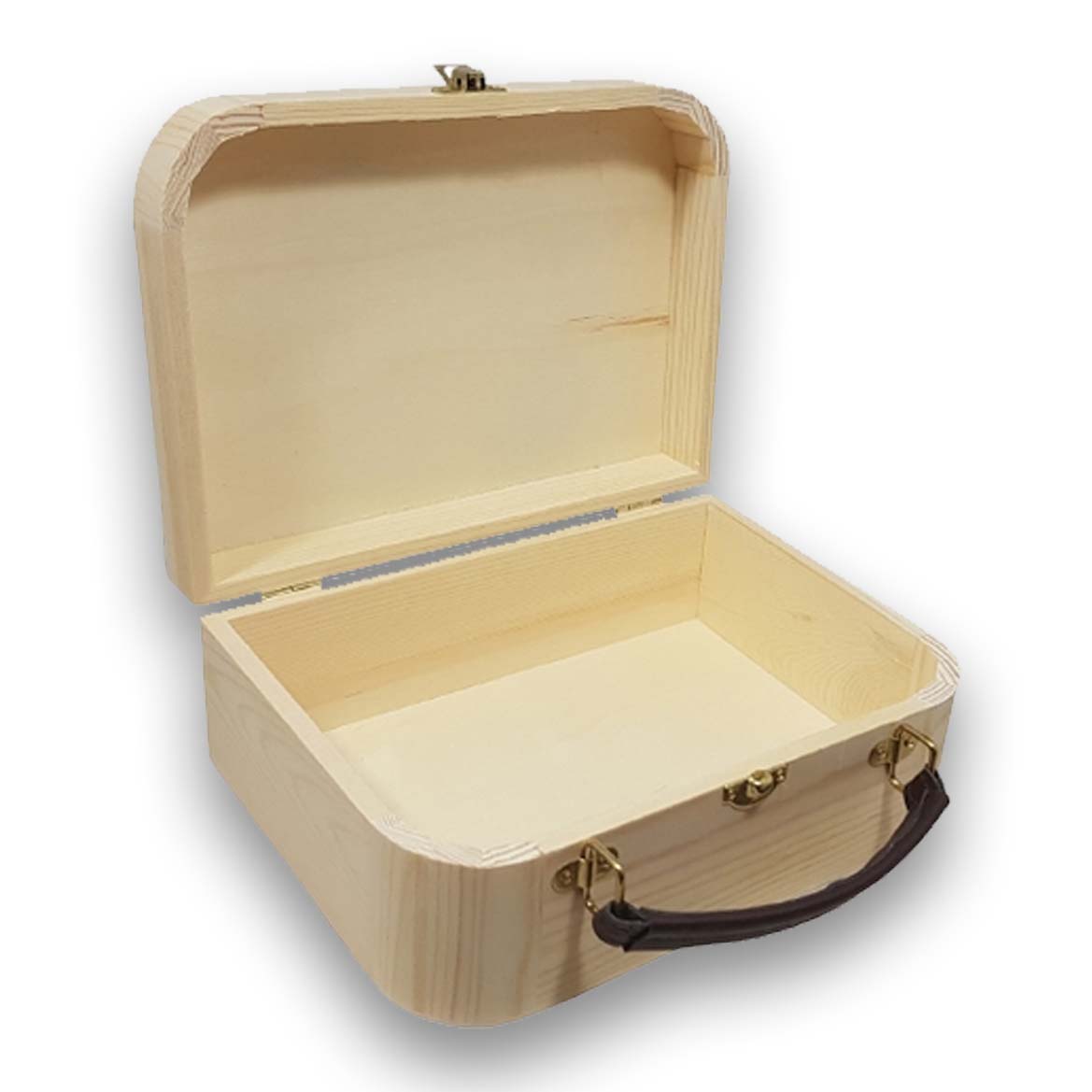 Karakteristiek Grenen Logeerkoffertje met Leren Handvat