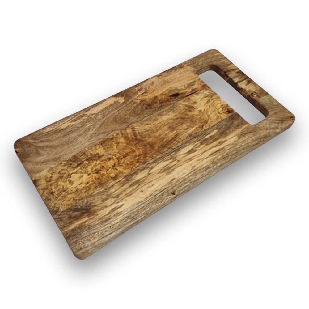 Mangohout staat bekend om zijn karakteristieke, warme goudbruine kleur en de unieke, golvende nerven die elke plank een eigen gezicht geven. Met een afmeting van ruim 40 cm is deze plank een krachtige verschijning op je aanrecht op op tafel, ideaal voor het snijden van brood of een selectie fijne kazen.