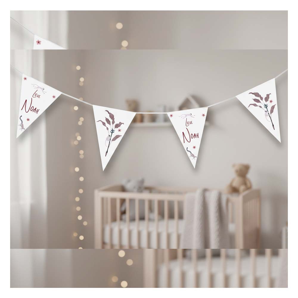 Bijzonderheden: Door de klassieke driehoekige vorm en het luxe materiaal krijgt de ruimte direct een feestelijke sfeer. De vlaggen worden met zorg geproduceerd zodat uw foto’s en kleuren optimaal tot hun recht komen. De afmeting van 1 vlag is 14,8cm breed en 21cm hoog, loopt taps toe.